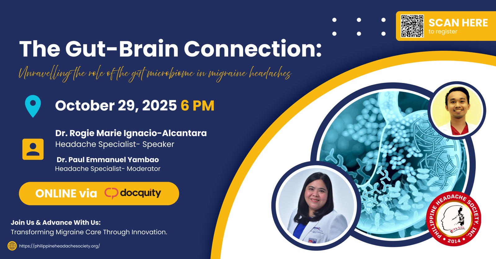 Join the Philippine Headache Society’s webinar: The GUT–Brain Connection: Unravelling the Role of the Gut Microbiome in Migraine Headaches.